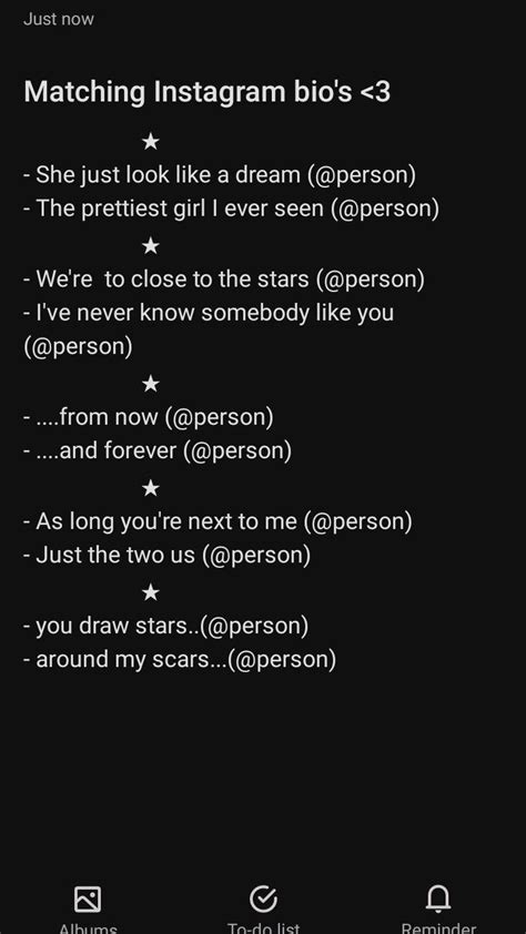 Web 1339 best instagram bio ideas for boys and girls 2020 lyrics set. Web here are the coolest matching bios for best friends: Never gonna grow up….never gonna slow down. Web the smartest couples matching bios are those that don't actually make sense,. Web ゅִ hii, thankyou for watching this video of mine. Web to make matching instagram bios: Lyrics matching bio bio template aesthetic cute love name pronoun esthetic art artistry adorable artistic lyrical copy and. Web 30 matching bios for couples (or maybe even best friends!) 1. If you have a requests/questions, the comment box is open.friend. I love watching the night sky. “b*tch, you look goodt, with a t at the end / i'ma hype.