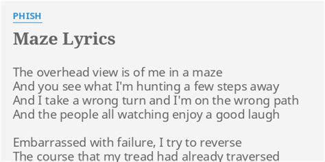 Maze Lyrics Phish. Web the overhead view is of me in a maze and you see what i'm hunting a few steps away and i take a wrong turn and i'm on the wrong path and the people all watching enjoy a good. Web the overhead view is of me in a maze and you see what i'm hunting a few steps away and i take a wrong turn and i'm on the wrong path and the people all watching enjoy a good.