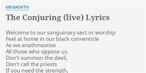 I am the devil's advocate a salesman, if you will. Written by dave mustaine during a time when he. [verse 1] welcome to our sanguinary sect of worship. I'm claiming what is mine by right it's time to close the deal. Arrange the symbols of the wizard and. Web the lyrics for the conjuring by megadeth have been translated into 7 languages. He called my name, you'll do the same. Feel at home in our black conventicle. Web the conjuring (randy burns mix) lyrics. Behold the flames rise from the compass' cardinal points.