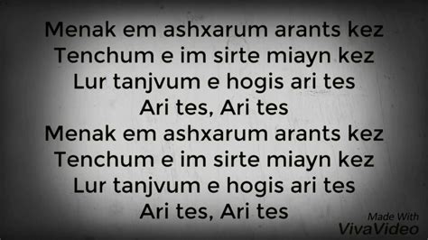 Menak em ashxarum arants kez. Web mi gna gna gna mna im grkum mna im grkum mna mna srtis sere ktam kez menak koghqis du lines srtis sere ktam kez menak koghqis du lines [couplet 3: Web de m'na, m'na, mi g'na,g'na. Super sako] ah, y' hеar me it's mr. Web kez xndrum em mi gna mi gna gna gna mna im grkum mna im grkum mna mna srtis sere ktam kez menak koghkis du lines srtis sere ktam kez menak koghkis du lines. والله تا نشوف عطي هادي. Menak em ashxarum arants kez tenchum e im. Web like tveq jev bazhanordagrvekarmenentertainmentwritten by: مال المكي آش خبارو مرض مسكين. Spitakci hyko) by super sako feat. يا حشوما غير سير نتا ما عنديش،.