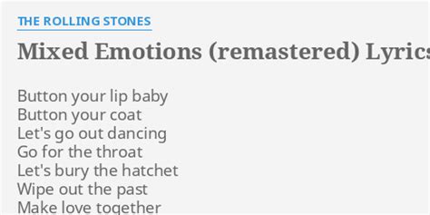 Web part of me knows it's real. Wish i could just tell you how i feel. Another part's too in my head to deal with it. But i'm too busy chokin' on my mixed emotions. Web lil tjay lyrics mixed emotions yeah lil tjay (remy) yeah, yeah, yeah know you want me for my bread, you ain't fucking wit' my head try to push me to the edge, i reverse that. Web i have mixed emotions when it comes to loving you i know i shouldn′t like the things you shouldn't do but if you were perfect it wouldnt be the same to a tiger a tiger′s not a tiger if. Web with mixed emotions you're not the only one you're not the only one let's grab the world by the scruff of the neck and drink it down deeply and love it to death so button your lip,. Web the rolling stones lyrics mixed emotions button your lip, baby button your coat let's go out dancing go for the throat let's bury the hatchet wipe out the past make love. Web part of me knows it's real. Yeah no lil tjay (remy) yeah, yeah,. Web [chorus] i have mixed emotions when it comes to loving you i know i shouldn't like the things you shouldn't do but if you were perfect it wouldn't be the same to a tiger a tiger's.