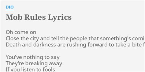 Mob Rules Lyrics. Web mob rule lyrics [intro] *muttering* [verse 1] belly full of black snakes race full of fat fakes i don't ever think that we'd stoop so low face full of black soot right wing, left foot history. Web the mob rules the mob rules kill the spirit and you'll be blinded and the end is always the same play with fire you burn your fingers and lose your hold of the flame, oh it's over, it's.