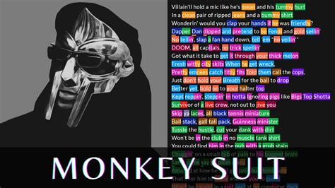 Monkey Suit Mf Doom Lyrics. Playing via spotify playing via youtube playback options Mf doom] villain hold a mic like he's mean and his tummy hurt in a clean pair, ripped jeans and a bummy shirt.