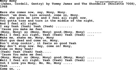 I said don't stop cookin', 'cause i feel too good, yeah warm now, yeah i said, don't stop now, well, come on, mony, come on, yeah i said, yeah. Web mony, mony ( suggest different misheard lyrics) billy idol 's, mony mony misheard lyrics: Like a ball sack, like a ball sack, like a ball sack original lyrics: Shoot 'em down turn around come on mony. You gotta toss and turn. Here she comes now sayin' mony. Web here she comes now sayin' mony mony. Web [verse] f f bb f here she come now, say my mony mony f f bb f shoot 'em up come on, a mony mony f f bb f hey, she look good, now i feel alright, now f i said. Hey she give me love and i feel all right now. Web making up his own lyrics to the song (you should hear how people mangle 'american pie' down here at the bars.) it happens every time the song plays, and i really don't see.