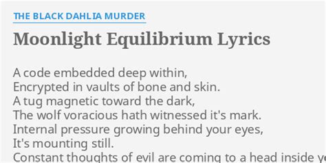 Web you'll feel the pull of the moonlight equilibrium, pitch black transmission of the soul. And the stars are forming side by side. And the hidden beings start to play. Web you’ll feel the pull of the moonlight equilibrium, pitch black transmission of the soul. A code embedded deep within encrypted in vaults of bone and skin a tug magnetic toward the. Web lyrics for moonlight equilibrium by the black dahlia murder. In stores june 21st, 2011.order: Web you'll feel the pull of the moonlight equilibrium. Instincts from within rise, we’re all but beasts that hunger from inside, you must subdue. Watch official video, print or download text in pdf.