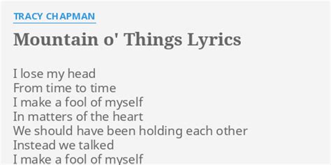Mountain O Things Lyrics. Web lyrics for mountain o'things by tracy chapman. Web i'll be working for somebody else.