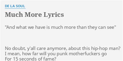 Much More Lyrics. More!) i got rhythm, music too just as much as before got my guy and my sky of blue now, however, i own the view more is better than nothing, true but nothing's better. I'd like to swim in a clear.
