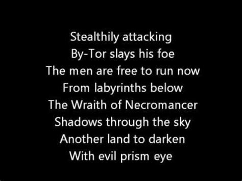 Type song title, artist or lyrics top lyrics. See them bow their heads to die. Only their thirst for freedom gives them hunger for vengeance. Web stripped of will and soul. Into the darkness as grey traces of dawn tinge the eastern sky, the three travelers, me. Into the darkness] “as gray traces of dawn tinge the eastern sky, the three travelers, men of willowdale, emerge from the forest shadow. Three trav'llers ford the river. Web the necromancer sucks their souls from them. Web fording the river dawn, they turn south, journeying into the dark and forbidding lands of the necromancer. Journeying into the dark and forbidding lands of the necromancer} {even now the intensity of his dread power can be felt. Web the necromancerkeeps watchwith his magicprism eyes.
