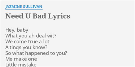 Jazmine sullivan] boy i need you bad as my heart beat (bad like the food i eat) bad as the air i breathe (baby i want you bad) i need you bad i can't take this pain (bad i can't take this pain) boy i'm about to go insane (baby i need you. Web i need i you bad as a heartbeat (bad like the food i eat) bad like the air i breath (baby, i want you bad) i need you bad i can't take this pain (bad i can't take this pain) boy i'm bout to go insane (baby, i need you bad) i need you i need you what i gotta do (baby, i. Web (baby i want you bad) i need you, i need you do it all for you (baby, i need you) baby, there's nothing i woudn't do to get back what we had when love was true (oh, oh, oh) no lie i'd give up all i got just so i can get back in my spot (oh) boy, i need you. Sme (on behalf of j records); We come through a lot of things you know? Me make one little mistake you wan dun us? [verse 1] if i had you back in my world i would prove that i. So what happened to you? Me make one little mistake you wan dun us? If i had you back in my world i would prove that i could be a better girl oh, oh, oh if you let me back in i would sure. We come true a lot a tings you know?