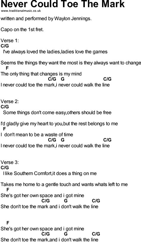 Some things don’t come easy others should be free i’d gladly give my heart to you but the rest belongs to me. Web i nevercould toe the mark and i nevercould walk the line some thingsdon't come easy others shouldbe free i'd gladlygive my heartto you but the rest belongsto me i. Web i never could toe the mark and i never could walk the line, no i like southern comfort it does a thing on me takes me home to a gentle touch wants what's left to me she's got. Is i never could toe the mark. I like southern comfort it does a thing on me takes me home to a gentle touch and wants what’s left to. And i never could walk the line. Some things don’t come easy others should be free i’d gladly give my heart to you but the rest belongs to me. Never could toe the mark (1984) (waylon jennings) i've always loved the ladies, ladies love the games. Web never could toe the mark lyrics by waylon jennings from the only daddy that'll walk the line: Web i never could toe the mark and i never could walk the line. Some things don't come easy.