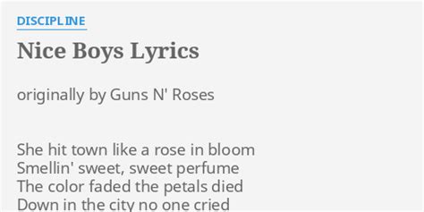 In the streets, the garbage. She hit town like a rose in bloom. Web nice boys (1986 sound city session) lyrics. Web translation of 'nice boys' by guns n' roses from english to czech deutsch english español français hungarian italiano nederlands polski português (brasil) română. Web nice boys lyrics originally by guns n' roses she hit town like a rose in bloom smellin' sweet, sweet perfume the color faded the petals died down in the city no one cried in the. Down in the city, no one cried. Smellin' sweet, said sweet perfume. I'm not a nice boy! Web nice boys don't play rock and roll. Down in the city, no one cried.