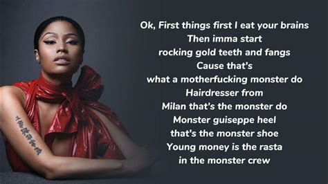 Bon iver] i shoot the lights out hide 'til it's bright out oh just another lonely night are you willing to sacrifice your life? A lyric about the rich life. Browse for nicki minaj monster song lyrics by entered search phrase. Hair dresser from milan that's the monster do. Web i'm living the future so the presence is my past. Web yeah my money's so tall that my barbies gotta climb it hotter than a middle eastern climate find it, tony matterhorn dutty wine it, wine it nicki on them titties when i sign it how. Web nicki minaj monster lyrics (feat. Web everybody know i'm a muthafuckin' monster i'ma need to see your fuckin' hands at the concert i'ma need to see your fuckin' hands. Web [nicki minaj:] pull up in the monster, automobile gangsta with a bad bitch that came from sri lanka yeah, i'm in that tonka, color of willy wonka you could be the king, but watch. Monster giuseppe heel, that's the. 'cause that's what a motherfucking monster do.
