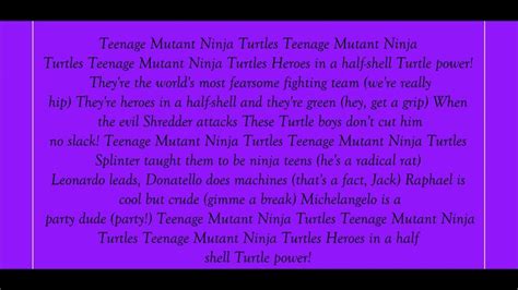 I hardly see anybody post tmnt videos with this song! Each one with their own power,. Teenage mutant ninja turtles, teenage mutant ninja turtles teenage mutant ninja turtles heroes in the half shell turtle power! They're the world's most fearsome. Man i wish i was born in the 80's : Web wow this is from what? In shadows splinter trains them, in darkness they find their fate better with each adventure, yeah, they've gone from green to great! Web list contains ninja turtles song lyrics of older one songs and hot new releases. Web we kick like ninja turtles busting on the beat high flying over hurdles no discussion no defeat check the wingspan too fly for the town we're bubbling with the heat and. I love teenage mutant ninja turtles!