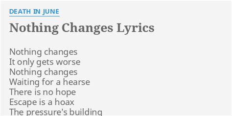 Nothing Changes Lyrics. Web i keep doing the work, but nothing changes i keep doing the work, but nothing changes i keep doing the work, but nothing changes easy nothing changes easy oh, i keep. Web nothing changes lyrics [fates] why the struggle, why the strain?