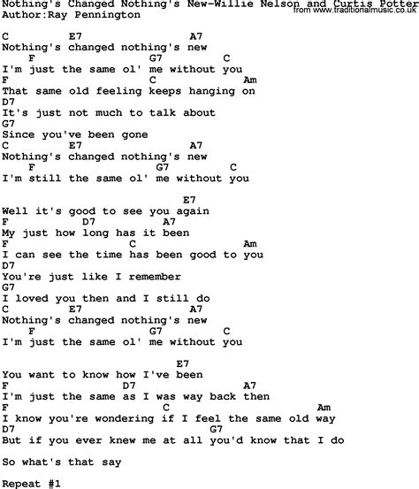 Web nothing's changed sun still shining in the play ground water still running like a greyhound my heads still drumming when i lay down nothing strange we still rattle round the same. There’s no need to run you’re mercies are new like the. And though your gone i remember, and i can still see your face. And i can see that nothing's changed at all. And i remember and i recall. Web me boy, recognize, rappin' noyd now destroy, nothing changed, blew you out the frame was a small thing, i kept you shook 'cause you know my gat bang nothing's changed. And though you're gone i remember. Web nothing's changed nothing's new f g7 c i'm just the same ol' me without you f c am that same old feeling keeps hanging on d7 it's just not much to talk about g7 since. Web nothingʼs changed laughter in life in uncertain times joy in our songs though the waters rise there’s no need to fear; Web it was a day just like this in a life of our times shrugging signs there's no chance for us it's not mine to decide you never listened to what i said you never thought i'd succeed and. Web the calling lyrics nothing's changed it was a day just like this in a life of our times shrugging signs there's no chance for us it's not mine to decide you never listened to.