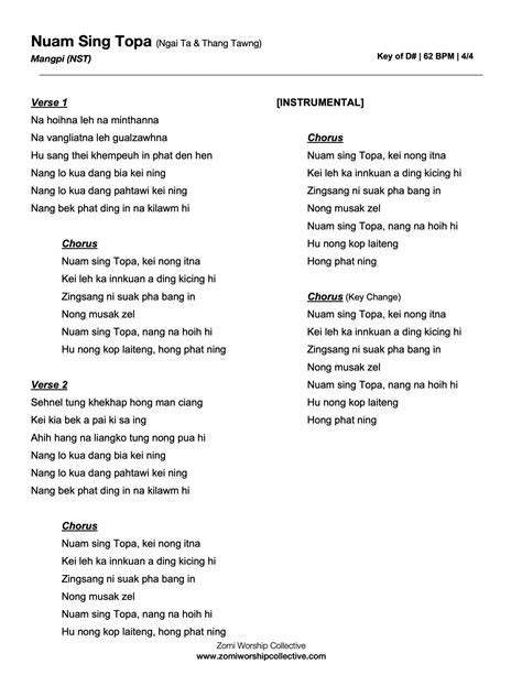 Nuam Sing Topa (Ngai Ta) Lyrics & Chords » Zomi Worship Collective