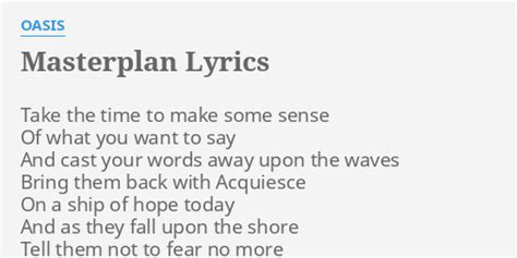 Oasis Masterplan Lyrics. Web the masterplan lyrics by oasis from the time flies. How it's gonna be, please brother let it be.