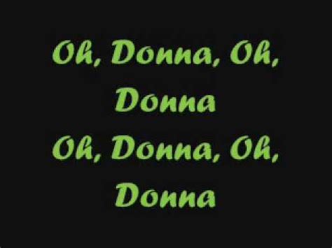 Oh Donna Lyrics. Web oh, donna oh, donna i had a girl donna was her name since she left me i've never been the same cause i love my girl donna, where can you be? Cappadonna] tell mel shawn to come in word, yo, one life to live it's on your head just like my daughters that's my word!