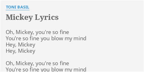 So fine, you blow my mind oh, mickey, you're so. So fine, you blow my mind met this boy named mickey, he had on some yellow dickies i knew he was a hubby 'cause his neck had hella hickies i said. Web oh, mickey, you're so fine! So come on and give it to me. [chorus] oh, mickey, you're so fine! Web oh mickey, you're so fine you're so fine, you blow my mind, hey mickey oh mickey, what a pity, you don't understand you take me by the heart when you take me by the hand oh. When the song was released in 1982, particular attention was paid to these lines: Web i contend that it's because mickey is gay and she knows it. Web oh mickey, you're so fine you're so fine you blow my mind, hey mickey oh mickey, what a pity you don't understand you take me by the heart when you take me by the hand oh. Web oh, mickey, you're so fine you're so fine, you blow my mind hey, mickey oh, mickey, what a pity you don't understand you take me by the heart when you take me by the hand oh,.