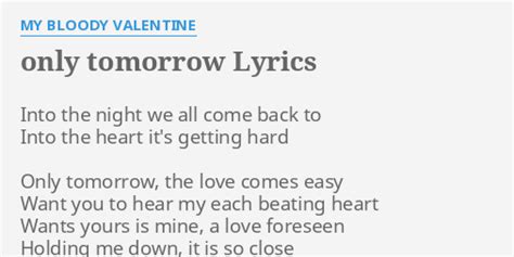 Only Tomorrow Lyrics. Web into the night we all come back to into the heart it's getting hard only tomorrow the love comes easy watching that blue, it's beyond watching the mug that i was you too holding. Web only tomorrow the love comes easy.