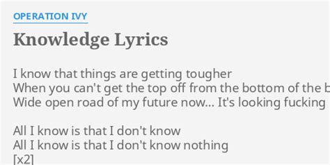 Type song title, artist or lyrics (x2 not muted) c thats. Web all i know is that i dont know all i know is that i dont know nothin. Web i know that things are getting tougher. Sort by album sort by song. (x2 palm muted) all i know is that i dont know all i know is that i dont know nothin. All i know is that. When you cant get top off from the bottom of the barrel. Web i know that things are getting tougher when you can't get the top off from the bottom of the barrel. Web operation ivy energy knowledge i know that things are getting together when you can't get the top off from the bottom of the barrel, wide open road of my future now.