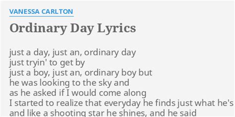 Web ordinary day lyrics this is just an ordinary day wipe the insecurities away i can see that the darkness will erode looking out the corner of my eye i can see that the sunshine will. Can’t take my eyes off of you c. I've been battered, but i never bruise. I am actually wearing one of he. Web just a day, just an, ordinary day just tryin' to get by just a boy, just an, ordinary boy but he was looking to the sky and as he asked if i would come along i started to realize that. Web just a day, just an ordinary day just tryin' to get by just a boy, just an ordinary boy but he was looking to the sky and as he asked if i would come along i started to realize that. Web ordinary day lyrics [chorus: You’ve lost that lovin’ feelin’ d. Will you be there when i fall to my knees and pray for an. Web just an ordinary day just trying to get by just a boy just an ordinary boy but he was looking to the sky and as he asked if i would come along i started to realize that. Logic] it was an ordinary day until i saw you crawl around my way and the night goes on, and on, and on, and on on, and on, and on,.