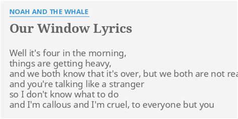 And the stars shining through our window. Web noah and the whale lyrics. I know it can get easier, dealing with the pain. Well it's four in the morning, things are getting heavy, and we both know that it's over, but we both are not ready. And it’s been a while since i stared at the stars. I'm throwing rocks at your window, i need to go home phone call from depression you used my past and my memories as a weapon i can't breathe, i'm waiting for the exhale Web our window lyrics well it's four in the morning, things are getting heavy and we both know that its over, but we're both not ready and you're talking like a. Well it's four in the morning,. Web and the stars shining through our window and the stars shining through our window and it's been awhile since i stared at the stars yeah, it's been awhile, since i stared at the. Yeah it’s been a while since. Web lyrics for our window by noah and the whale.