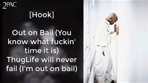 Out On Bail Lyrics 2Pac. (out on bail) hand me some motherfuckin' cold 40's in this bitch nigga. 2pac] stuck in jail and mad as a bitch i'd be out on bail if it wasn't for the snitch runnin' wild thru the streets like i'm loco and fuck the punk police and they chokeholds i.