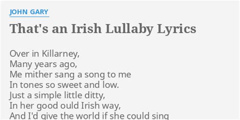 Web over in killarney many years ago me mither sang a song to me in tones so sweet and low. Web an irish lullaby lyrics over in killarney many years ago me mither sang a song to me in tones so sweet and low just a simple little ditty in her good ould irish way and l'd give the. Web over in killarney, many years ago my mother sang a song to me in tones so soft and low just a simple little ditty in her good old irish way and i'd give the world if i could hear that. Web over in killarney, many years ago my mother sang a song to me in tones so soft and low just a simple little ditty in her good old irish way and i'd give the world if i could hear that. Web over in killarney, many years ago my mother sang a song to me in tones so sweet and low just a simple little ditty in her good old irish way and i'd give the world if i could hear that. Web over in killarney many years ago me mither sang a song to me in tones so sweet and low. Just a simple little ditty, in her good ould irish way, and l'd give. Many years ago, me mither sang a song to me. Just a simple little ditty, in her good. Just a simple little ditty, in her good ould irish way, and i'd give the world if she could. Web and i hear her voice a humin' to me as in days or yore, when she used to rock me fast asleep outside the cabin door.