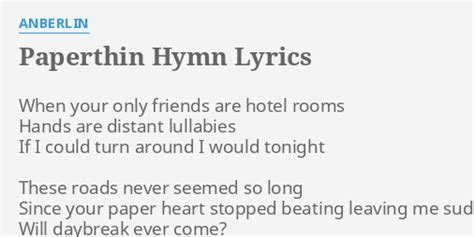 Paperthin Hymn Lyrics. When your only friends are hotel rooms. And now you know, i'm paper thin.
