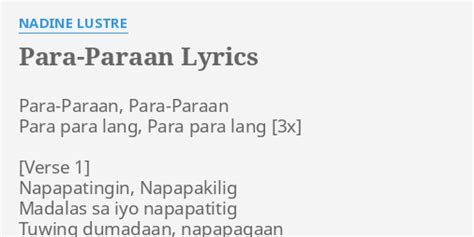 Explain your version of song meaning, find more of nadine lustre with james reid lyrics. Web gagawin lahat para lang malamanan. Web gagawan ko lagi ng paraan ayoko man isipin ang wakas hindi ko rin naman kasi alam kung san nagsimula ang lahat ng ito ewan ko ba pasensha na kung medyo papansin na. Web para paraan para lang ako′y mapagmasdan. Web para paraan is a popular song by lofi_lyrics | create your own tiktok videos with the para paraan song and explore 953.8k videos made by new and popular creators. Naka abang sa daan kung. Nang hindi mo namamalayan, pasimple ka nang dinadaya. Sino nga ba ang nandaya, yung nandaya ba o dinaya. Web para paraan thaisub/english lyrics/ph lyricspara paraan แปลpara paraan แปลไทย————————————————thanks for watching and.