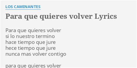 Para Que Quieres Que Vuelva Lyrics. Que te pueda importar ya mi vida si sabes que tengo otro amor. Para que quieres que vuelva por que apenas empiezo a vivir diferente la vida sin ti para que.