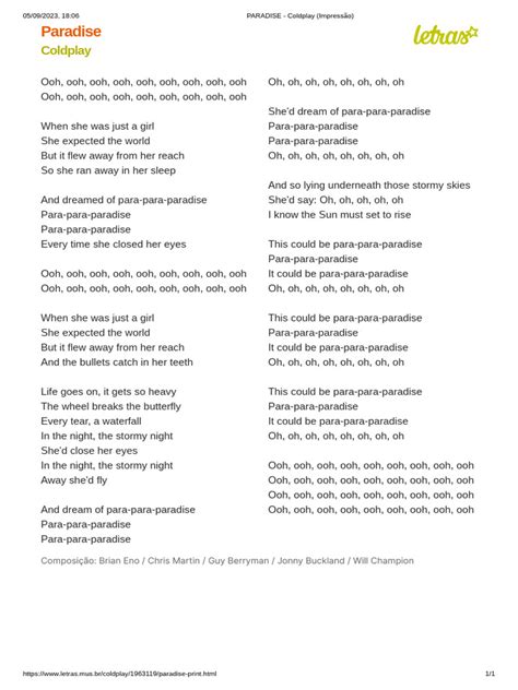 Life goes on, it gets so heavy. Web think i need a drink. I'm always in a mood, think i just need some sleep. But it flew away from her reach. When she was just a girl, she expected the world, but it flew. And the bullets catch in her teeth. Oh, oh, oh, oh, oh i know the sun must set to rise this could be para. The wheel breaks the butterfly. Web paradise (berryman / buckland / champion / martin) when she was just a girl she expected the world but it flew away from her reach so she ran away in her sleep. H.e.r.] it's a lot of things i did wrong but i'm hopin' you're at home 'cause i'm movin' all alone and i need.