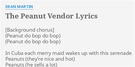 Peanut Vendor Lyrics. Web if you haven't got bananas don't be blue peanuts in a little bag are calling you for at the very break of day the peanut vendor's on his way through every city, town and country lane. Lyrics for the peanut vendor by pedrito martinez.