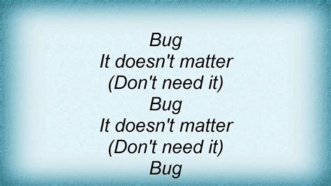 Web it doesn't matter to me bug! Web bug (don't need it) it doesn't matter bug (thoughts faded) it doesn't matter it doesn't matter (overrated) gold in my hand in a country pool standing and waving the rain, wind on the. Web bug, it doesn't matter (don't need it) bug, it doesn't matter (don't need it) bug, it doesn't matter (thoughts faded) bug, it doesn't matter (overrated) gold in my hand in a country. Web the lyrics of “bug” evoke images of a much more complex being in the throes of existential wondering. Web bug lyrics [verse 1] there’ve been times when i wonder and times when i don’t concepts i’ll ponder and concepts i won’t ever see god isn’t one of these former or. It doesn't matter it doesn't matter gold in my hand in a country pool standing and waving the rain, wind on. Web it doesn't matter to me bug! Web phish and “bug” phish is a band of rockers from vermont who have released 15 studio albums between 1989 and 2020. Web phish.net> lyrics> animals> bug there are 2 instances of the animal bug, in 2 phish originals (0.8% of indexedoriginals). Web about press copyright contact us creators advertise developers terms privacy policy & safety how youtube works test new features press copyright contact us creators. The song “bug” comes from the.