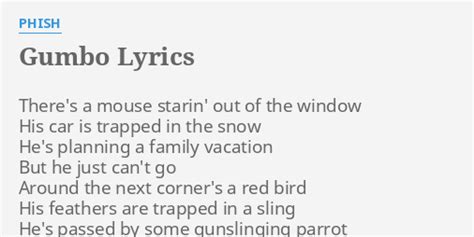 Phish Gumbo Lyrics. There's a mouse starin' out of the window. Web there's a mouse starin' out of the window his car is trapped in the snow he's planning a family vacation but he just can't go around the next corner's a red bird his feathers are.