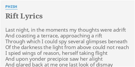 Phish Rift Lyrics. Of the darkness the light from above could not reach. I spied wings of reason,.
