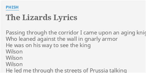Phish The Lizards Lyrics. Web lyrics to the lizards by phish: Web he said i come from the land of darkness i said i come from the land of doom he said i come from the land of gamehendge from the land of the big baboon but i'm never never.