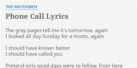 Phone Call Lyrics. Heal your burdens and your worries. Uh, hello and welcome to your new summer job at the new and improved.
