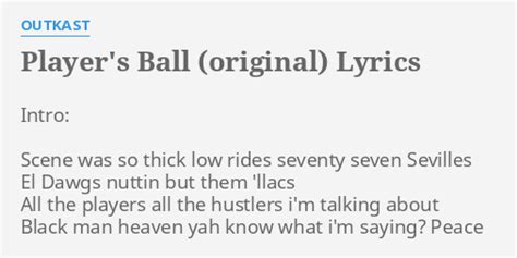 Players Ball Lyrics. [big boi:] ain't no chimneys in the ghetto so i won't be hanging my socks on no chimney. Y'know i do some things mo' different than i used ta.