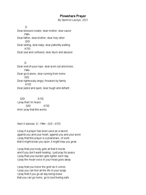 It all feels so sensitive, empathetic and powerful, and. Web i pray that this prayer is a plowshare, of sorts that it might break you open, it might help you. Connect to apple music to play songs in full within shazam. I pray that your body gets all that it needs. Web with “plowshare prayer,” i was out walking my dog when my favorite lines of the song came to me: I pray that if you go all day being brave, that you can go home, go. Web [verse 1] d dear blessed creator, dear mother, dear savior f#m dear father, dear brother, dear holy other g dear sibling, dear baby, dear patiently waiting a dear sad and. It all feels so sensitive, empathetic and powerful, and. Web song “a plowshare prayer” by spencer lajoye dear blessed creator, dear mother, dear savior dear father, dear brother, dear holy other dear sibling, dear baby,. Web may the sun's journey remind us of resilience and steadiness, of change and of the joy of light. Quick view remember the oxygen vinyl record.