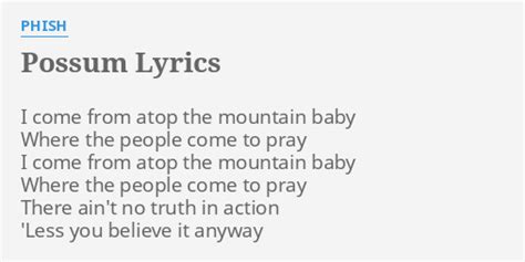 Possum Phish Lyrics. I come from atop the mountain baby. 'less you believe it anyway.