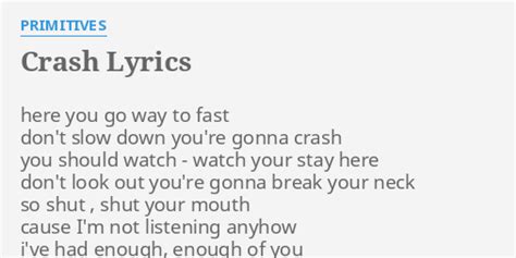 Primitives Crash Lyrics. Web here you go way too fast don't slow down gonna crash you should watch watch your step don't lookout gonna break your neck so shut shut your mouth 'cause. So shut, shut your mouth.