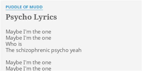 Puddle Of Mudd - Psycho Lyrics. Web i thought its about not knowing if your schizophrenic or if your gut feeling is correct and she's just playing mind games with you and when you try to tell her what's. Web maybe i'm the one, maybe i'm the one who is the schizophrenic psycho, yeah maybe i'm the one, maybe i'm the one who is the schizophrenic psycho she lays down on the.