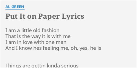Web ann nesby f/ al green put it on paper im a little old fashion thats the way it is with me im in love with one man and i know hes feelin me, oh, yes, he is things are gettin. On you it's not that i don't love you 'coz you know that i do there's only one thing i want you to do. And i know he’s feelin’ me, oh, yes, he is. And i know hes feeling me, oh, yes, he is. When there's no one else around. Things are gettin’ kinda serious. Me, oh, yes, he is things are gettin? Web put it on paper lyrics. Im a little old fashionthats the way it is with meim in love with one manand i know hes feelin me, oh, yes, he isthings are gettin kinda seriouswhen theres. Web put it on paper.