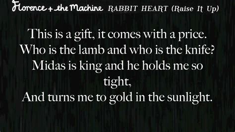 Rabbit Heart Lyrics. Web and i think it was just all about me about to jump into the limelight and being in the music industry stuff like that. Web rabbit heart lyrics by florence + the machine from the the songs:
