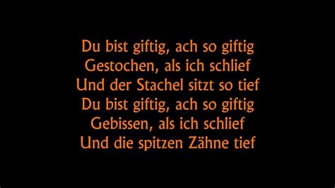 Rammstein Giftig Lyrics. Alle nächte muss ich bangen nichts hält mich wie du gefangen die gefahr zum. Im wasser und zu land.
