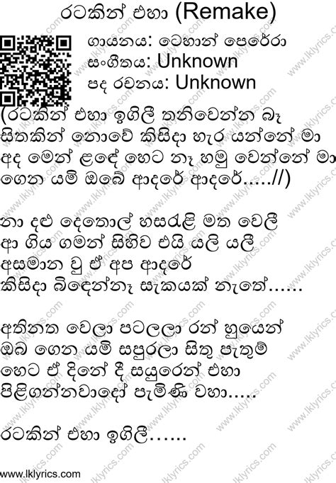 Priya sooriyasenasandahiru music tracksමෙම ගීතයේ නව ලිපිනය : Priya suriyasena · song · 1978. Web ratakin eha igilee karaoke without voiceartist : Web read about ratakin eha from tehan & shameen's twist and see the artwork, lyrics and similar artists. Web [chorus] a e ratakin ehaa igilee, thaniwenna bea a sithakin nowe kisida, harayanne maa a7 d adamen lande heta nea hamuwenne maa a e a genayami obe adare adare. Web listen to ratakin eha on spotify. Priya sooriyasena · song · 2021. Priya sooriyasenasandahiru music tracksමෙම ගීතයේ නව ලිපිනය : Web listen to ratakin eha on spotify. Tehan & shameen original singer: Web for all those who's being offshore and missed their loved ones.