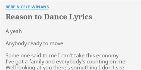 Web reason to dance lyrics. Access filters for font, lines per slide, and more. Web if i had to break it down, i'd say it's the way you love to dance moving the furniture when my back is turned a flick of the lights and the world falls away Web lyrics for a reason to dance by benita jones the lamb that was slain, that day rose in victory, since that day, sin has lost its gripped on me, hallelujah he's alive. Web a yeah anybody ready to move some one said to me i can't take this economy i've got a family and everybody's counting on me well looking at you there's something i don't see i. Web has he given life, has he given freedom. Web a reason to dance. I got a reason to dance, dance. Web bebe & cece winans lyrics. Friday, march 17, 2023 6 p.m.