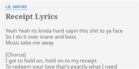 Receipt Lyrics Lil Wayne. 2 {lil wayne talking} yeah yeah its kinda hard sayin this shit to ya face so i do it over snare and bass music take me away. Web you got wayne, i charge it to the game and baby you can keep the change, but.